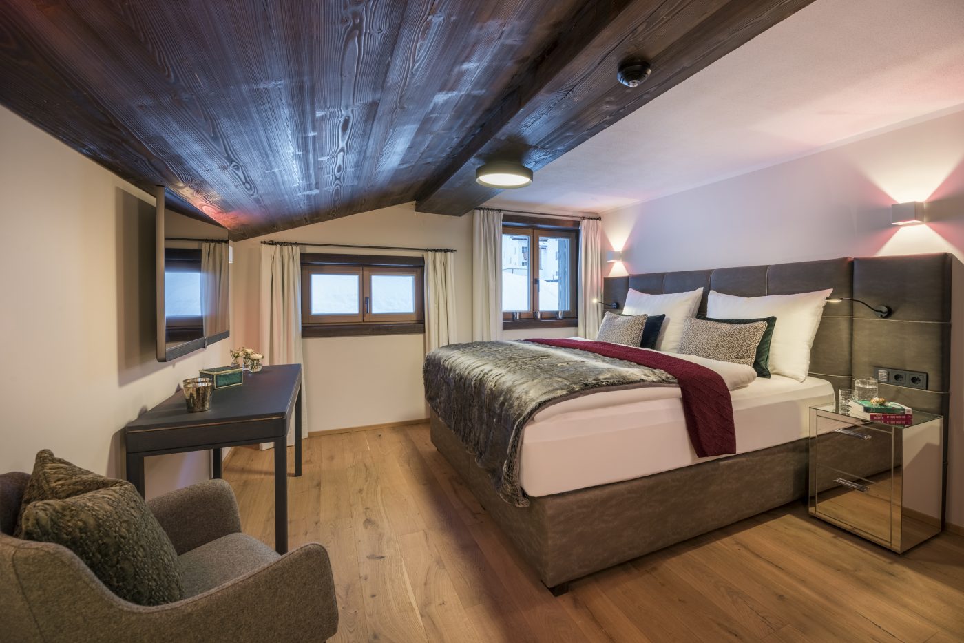 Sleeping eight guests in four bedrooms, the Lech apartment is spacious and stylish, designed with contemporary alpine touches.