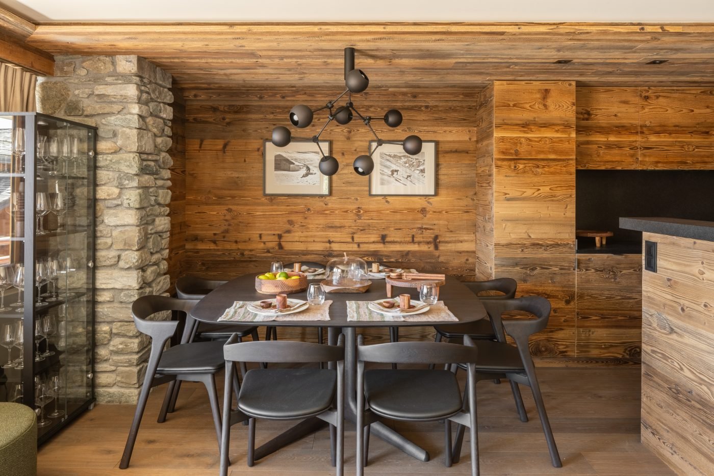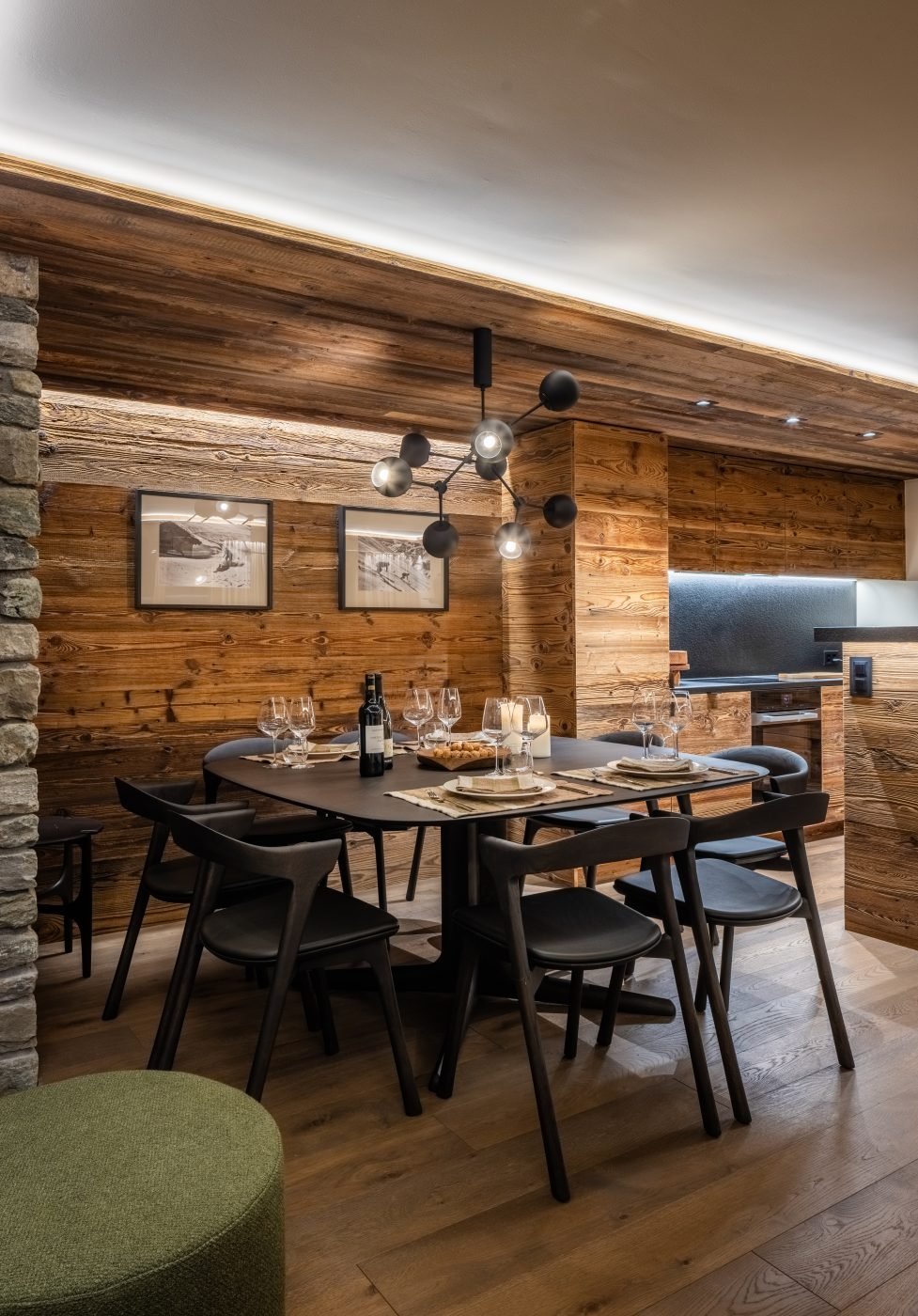 The fully equipped kitchen boasts top-of-the-line appliances, sleek countertops, and ample storage, making it easy to prepare everything from a quick breakfast to a gourmet feast. The dining area, complete with a stylish table, seating 8, provides a perfect setting for shared meals and lively conversations. Meanwhile, the cosy lounge area invites you to relax after a day on the slopes, whether you're enjoying a glass of wine, watching a movie, or simply unwinding by the window with a view.