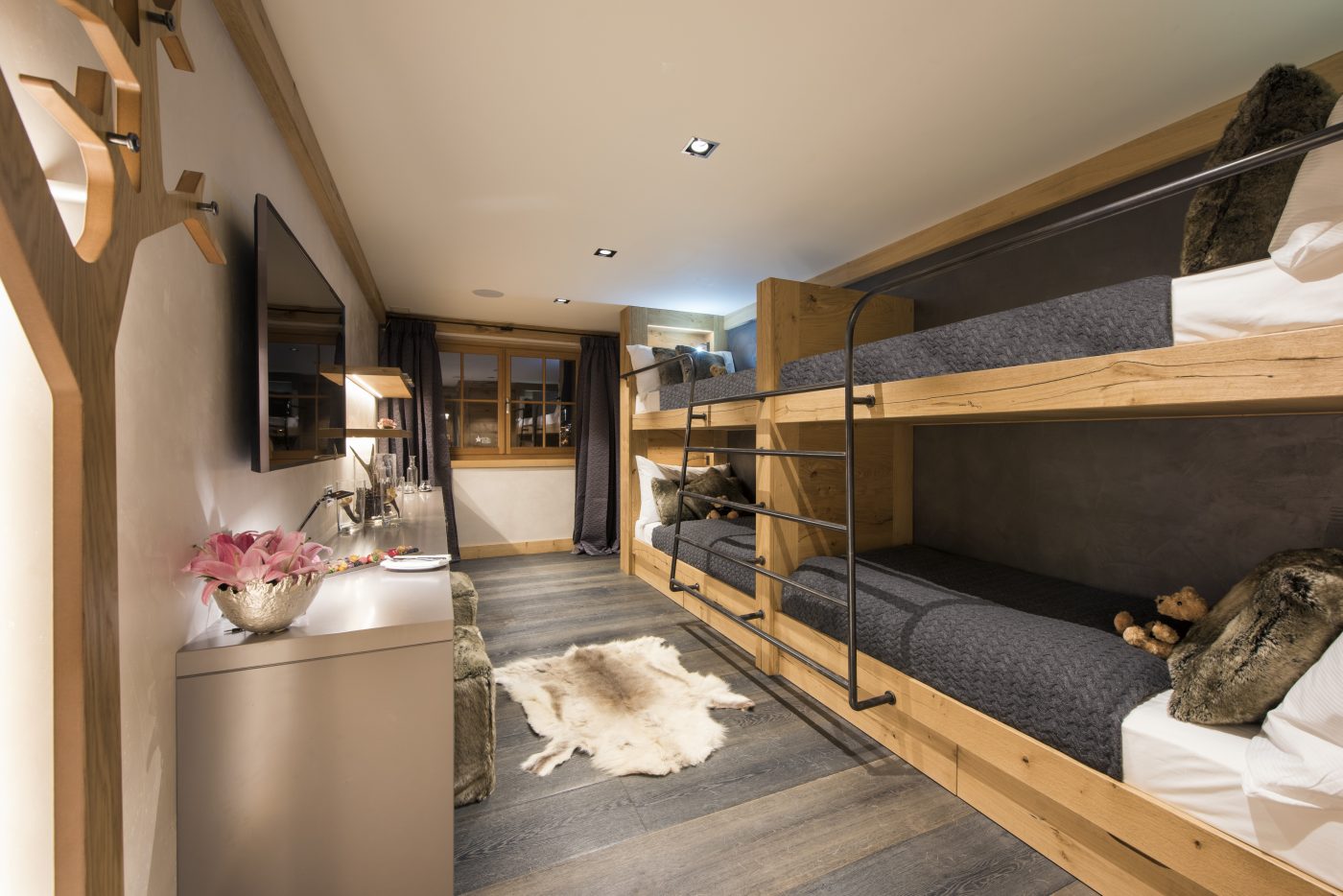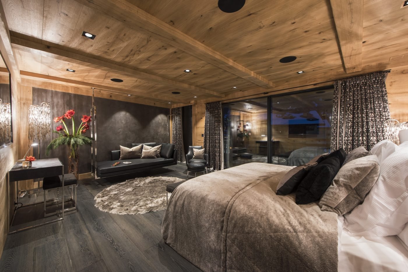 Set across four floors, Chalet Aconcagua spans 550 m² of exquisite design. The private ski room and elevator make mountain living effortless. Inside, natural materials and traditional timbers blend seamlessly with contemporary design, creating a warm yet sophisticated atmosphere. Every detail, from bespoke furnishings to the latest technology, reflects Haute Montagne’s commitment to exceptional standards.