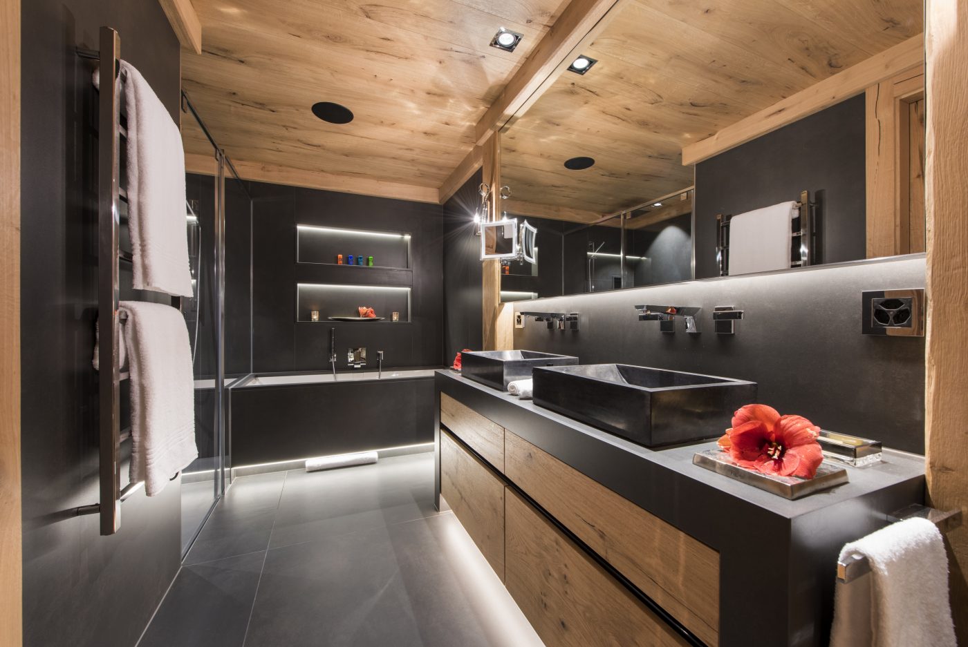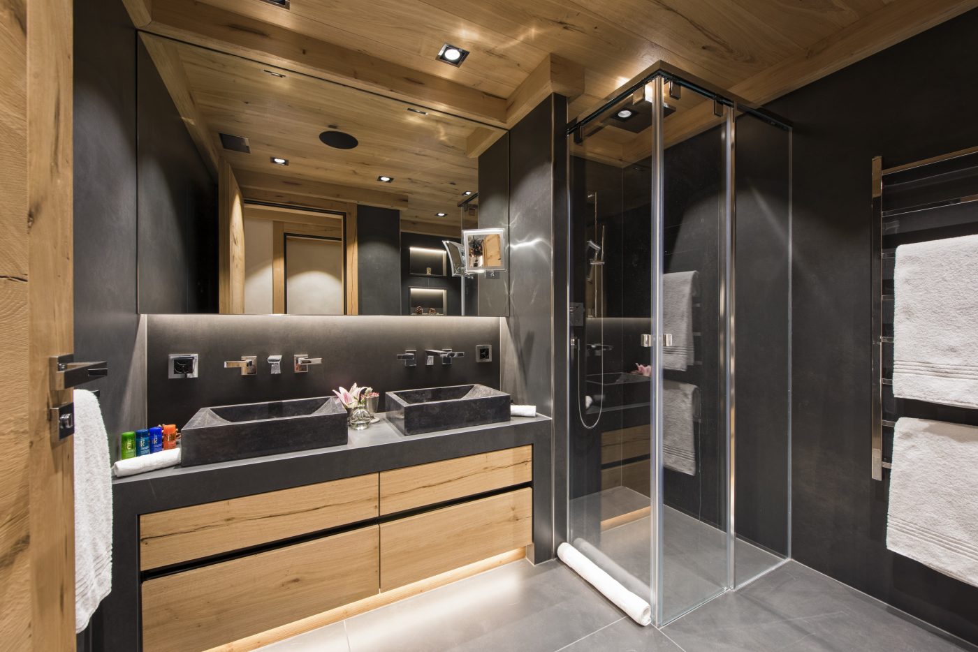 Meals are prepared in the chalet’s professional kitchen by your dedicated team, while an open kitchen on the top floor allows for convivial evenings when you wish to dine together.