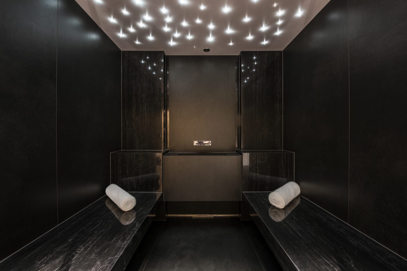 Guests enter through the grand lobby shared by the 7 Heavens chalets, an elegant space with a bar and lounge where you can unwind before retreating to the privacy of your own residence. A state-of-the-art fitness suite, reserved for guests of the development, ensures wellness is never out of reach.
