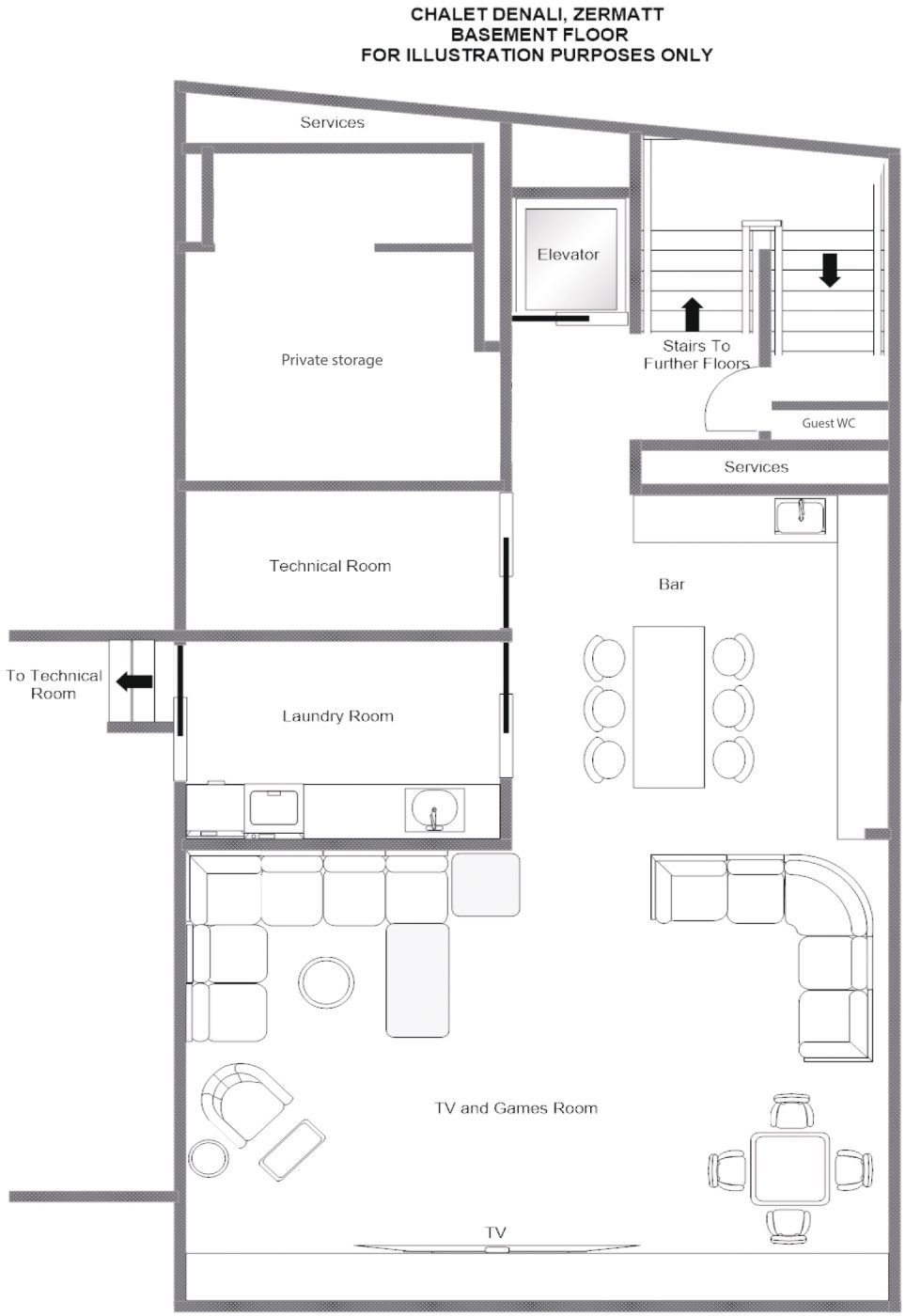 The 7 Heavens properties share an impressive entrance hall leading into a lobby and central living room with warming fireplace and bar. All the individual chalets are accessed from the central foyer. A state-of -the-art gym, complete with all the latest equipment and technology, is available for use by all guests staying in the 7 Heavens Residence.
